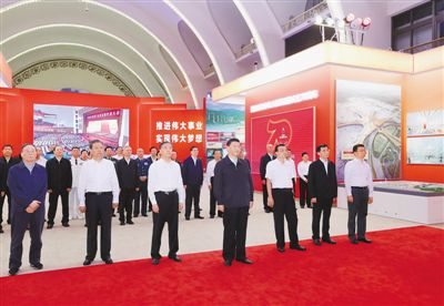 习近平在参观“伟大历程 辉煌成就—庆祝中华人民共和国成立70周年大型成就展”时强调 高举旗帜团结一致锐意进取 为夺取新时代中国特色社会主义伟大胜利不懈奋进 李克强汪洋王沪宁赵乐际韩正王岐山参观展览