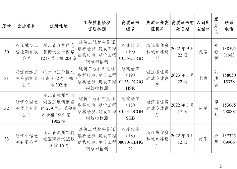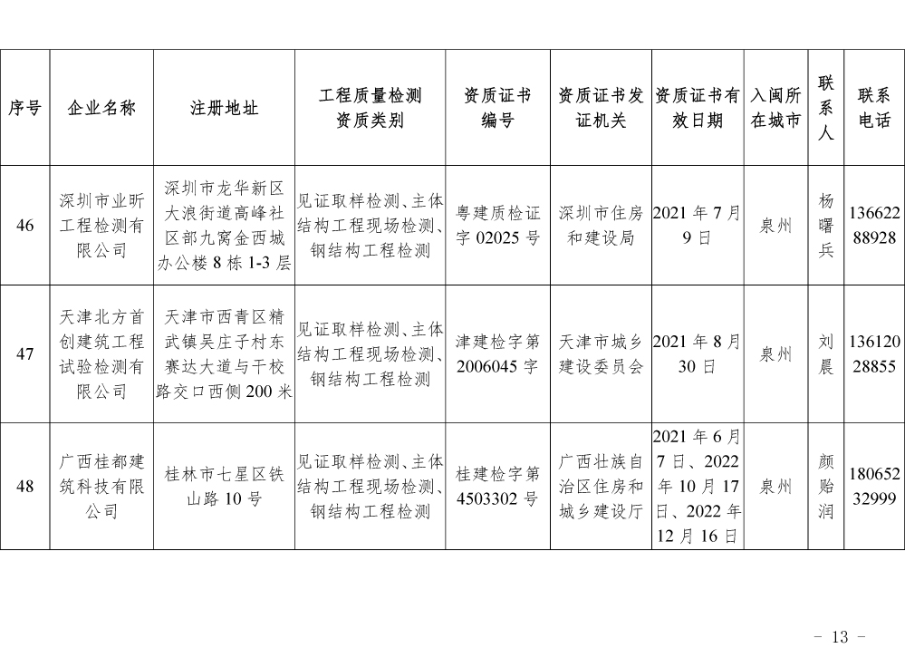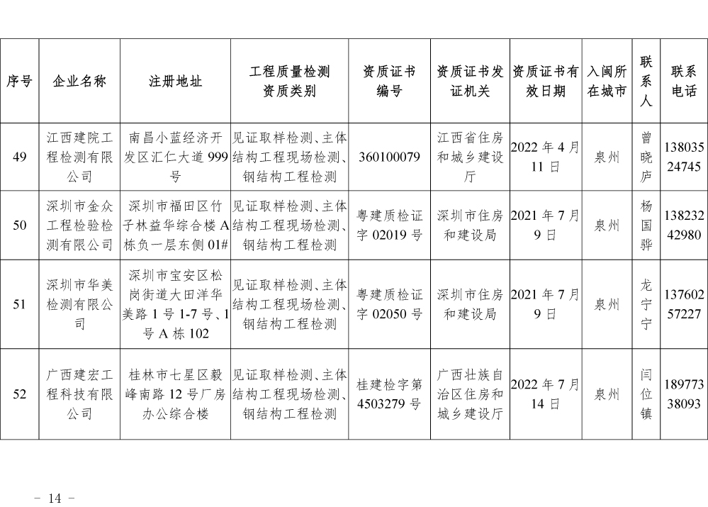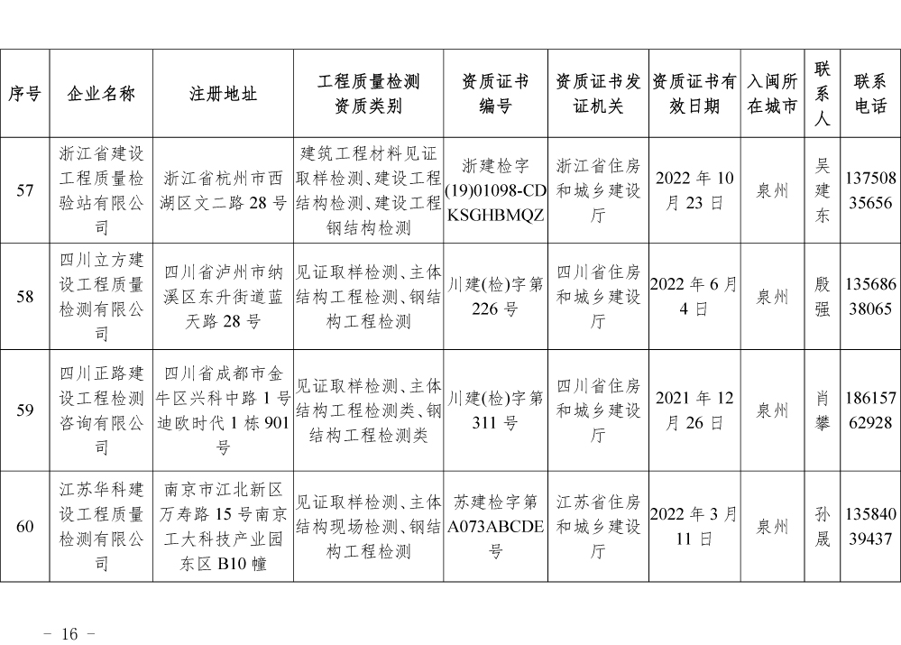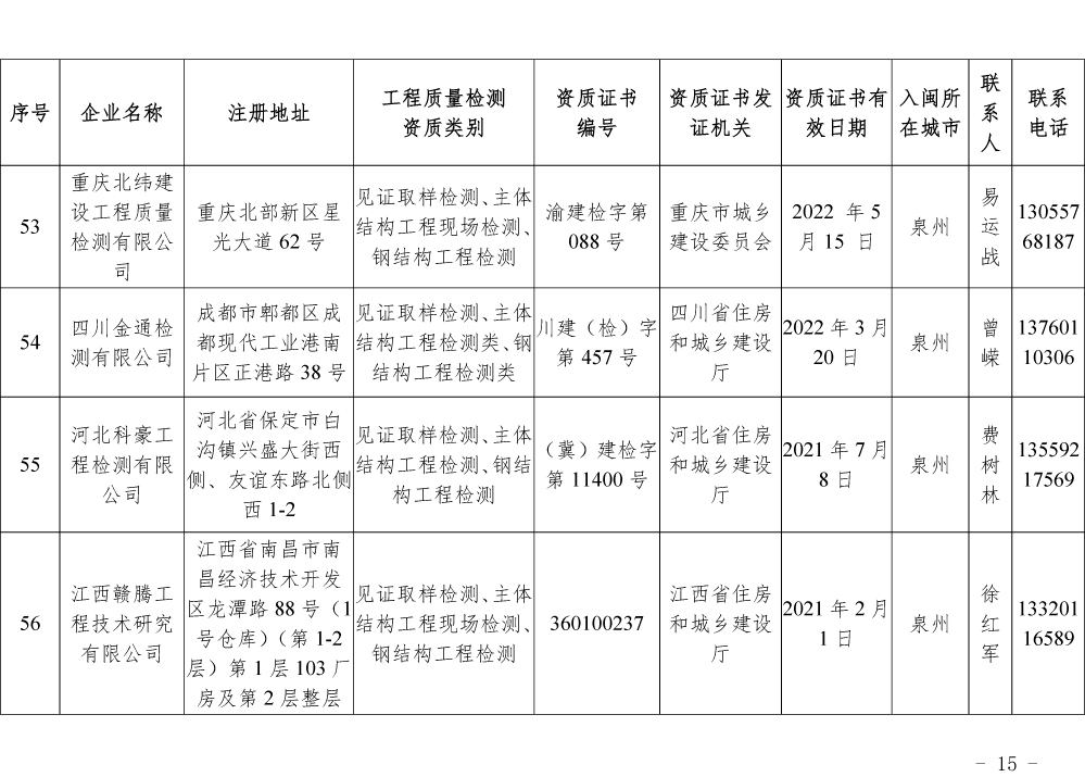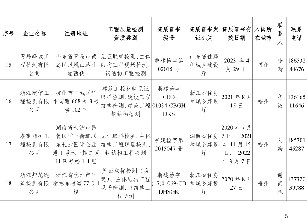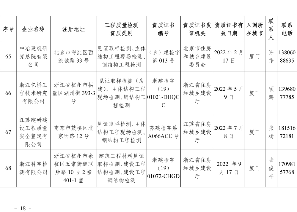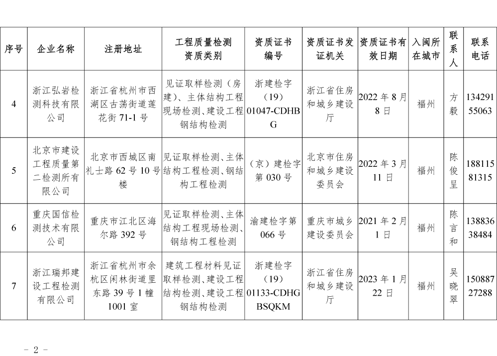 关于公布第一批省外建设工程质量检测机构入闽承担检测业务备案名单的通知