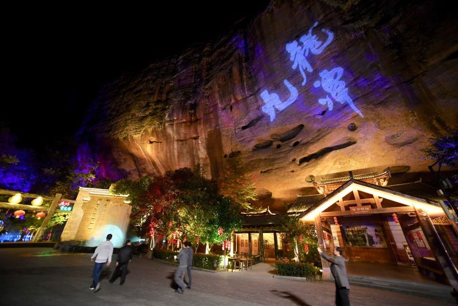 游客前往福建省泰宁县九龙潭景区体验夜游九龙潭旅游项目(1119日摄)。新华社记者 姜克红 摄