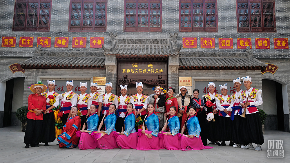 △当天在非遗陈列馆为总书记表演的演员合影。(总台国广记者李晋拍摄)