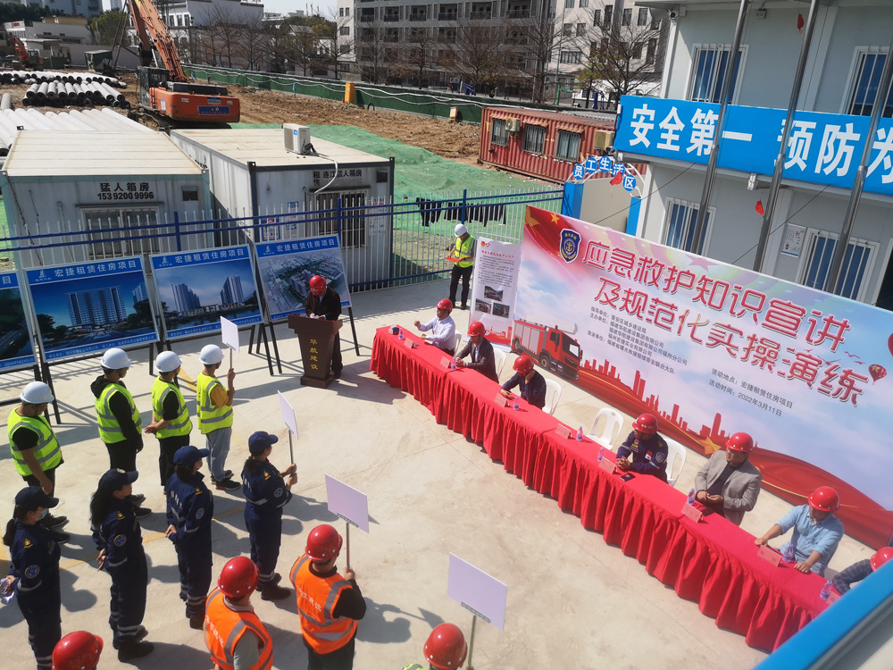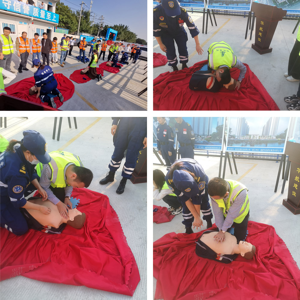 3月11日下午,为有效预防作业事故的发生,提高项目管理人员公共安全意识和自救互救能力,增强团队协作精神和团队凝聚力,福建华航建设集团邀请福建省曙光救援鼓楼晋安联合大队走进宏捷租赁房项目部,面向集团公司项目管理中心、省内部分项目的项目经理和安全员、宏捷租赁房项目部的现场施工管理人员共计30多人,宣讲应急救护知识并组织实操演练。晋安区建设局谢仲荣副局长、晋安区建设工程安全监督站陈振财站长、福建省曙光救援总队黄玲副总队长到场指导,项目业主单位和有关参建单位共同参加了本次活动。