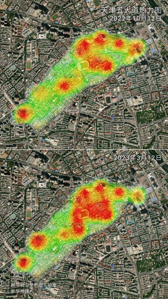 手机信令数据时空分布图显示,天津五大道商圈的人流密度明显提升。
