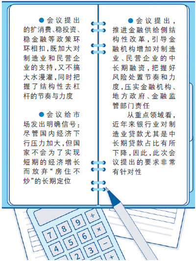 中国人民大学重阳金融研究院副院长董希淼分析,从重点领域看,近年来银行业对制造业贷款尤其是中长期贷款占比有所下降,因此,此次会议提出的要求非常有针对性。建议专门制定针对制造业贷款的制度办法,创新制造业贷款考核奖惩机制,建立起有效的容错纠错机制,在防范风险的前提下加大对制造业的信贷支持。