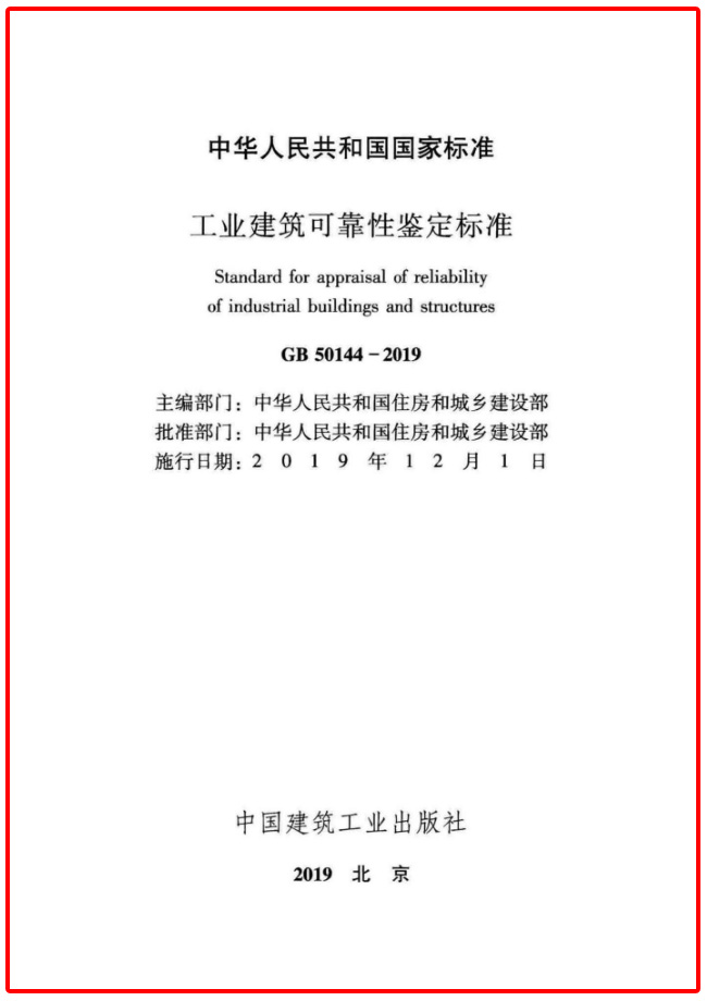 《工业建筑可靠性鉴定标准》GB50144是工业建筑诊治领域的基础标准,《工业建筑可靠性鉴定标准》GB50144-2019正式发布,极大地推动了我国工业建筑诊治技术的进步,从而促进我国工业建筑安全控制水平大幅提升,对于保障安全生产和合理使用建设资金具有重要意义。《工业建筑可靠性鉴定标准》GB50144-2019突出了工业建筑特点,适应了工业建筑发展的需求,技术先进、内容丰富、实用性和可操作性强,整体上达到了国际先进水平,在鉴定评级及钢结构疲劳评定方法方面达到了国际领先水平。