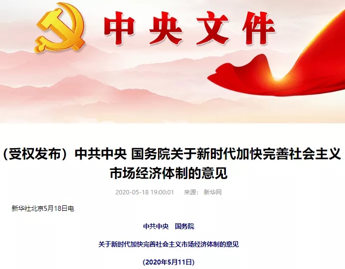新华社北京5月18日电,《中共中央国务院关于新时代加快完善社会主义市场经济体制的意见》发布。文件提出,中国特色社会主义进入新时代,社会主要矛盾发生变化,经济已由高速增长阶段转向高质量发展阶段,与这些新形势新要求相比,我国市场体系还不健全、市场发育还不充分,政府和市场的关系没有完全理顺,还存在市场激励不足、要素流动不畅、资源配置效率不高、微观经济活力不强等问题,推动高质量发展仍存在不少体制机制障碍,必须进一步解放思想,坚定不移深化市场化改革,扩大高水平开放,不断在经济体制关键性基础性重大改革上突破创新。