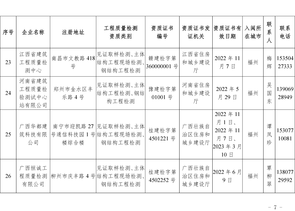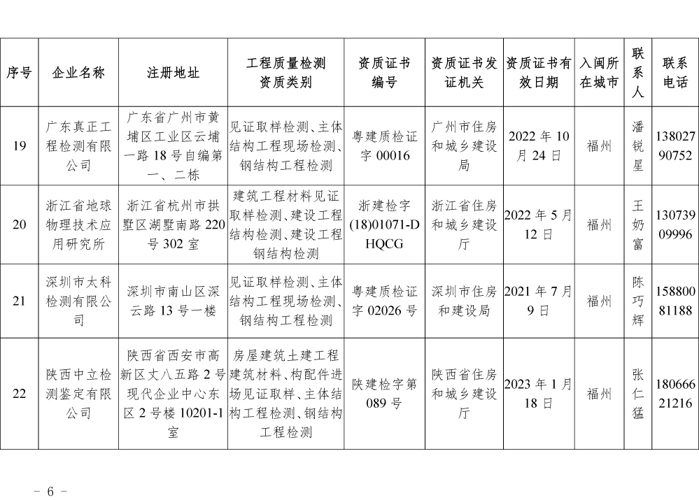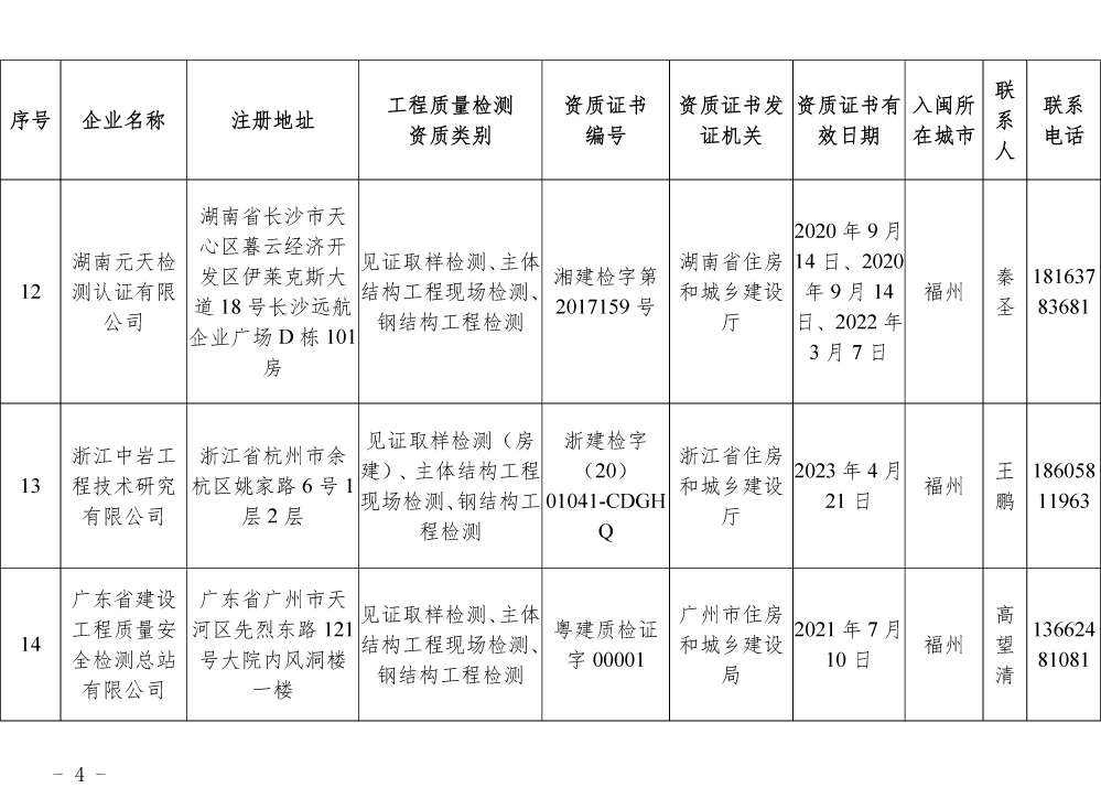 为更好的支持和服务我省房屋安全鉴定工作,截止5月底,共计74家省外建设工程质量检测机构已按照《建设工程质量检测管理办法》(住建部令第141号)有关规定,在我厅办理入闽承担检测业务备案手续,现将74家检测机构名单予以公布。