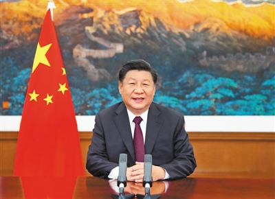 9月4日,国家主席习近平在2020年中国国际服务贸易交易会全球服务贸易峰会上致辞。 新华社记者 鞠 鹏摄