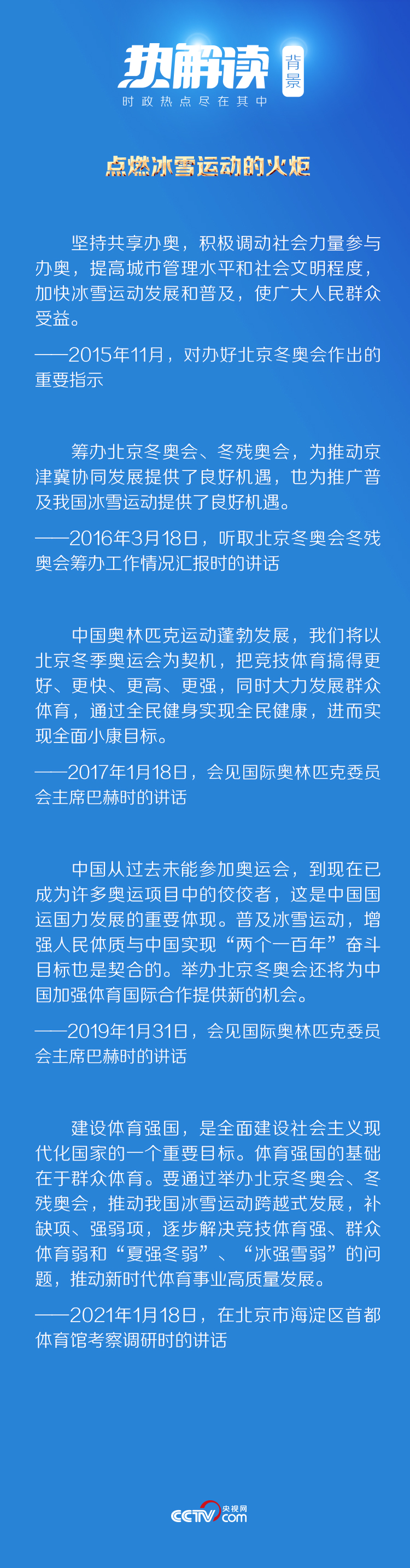 20172月,习近平总书记曾引用这句诗寄语冰雪健儿,希望以北京冬奥会为契机,把冰雪运动各个项目开展起来,促进冰雪运动在我国全面开展。