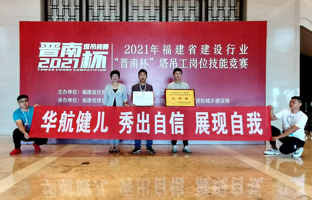 6月8日-10日,由福建省住房与城乡建设厅、福建省总工会主办,福建晋南建设集团有限公司协办的2021年福建省建设行业“晋南杯”塔吊工岗位技能竞赛在泉州火热举办。经过紧张激烈的比赛,福建华航建设集团获得团体奖项第三名,并接受颁奖。