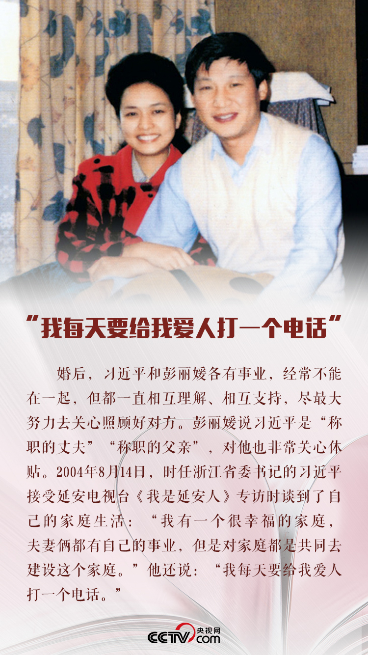 孝敬父母、爱护妻儿,习近平把家庭看得很重。他曾在接受媒体采访时说,“我有一个很幸福的家庭,夫妻俩都有自己的事业,但是对家庭都是共同去建设这个家庭。”