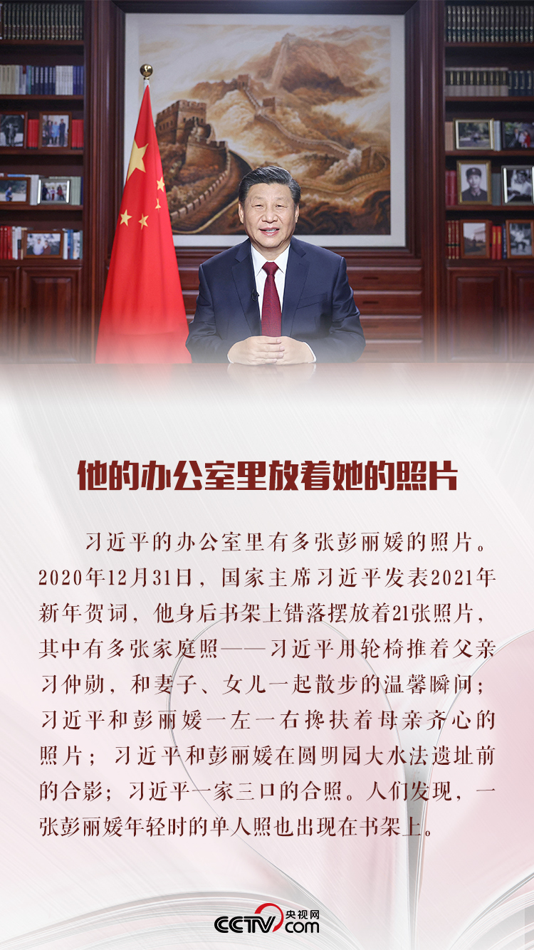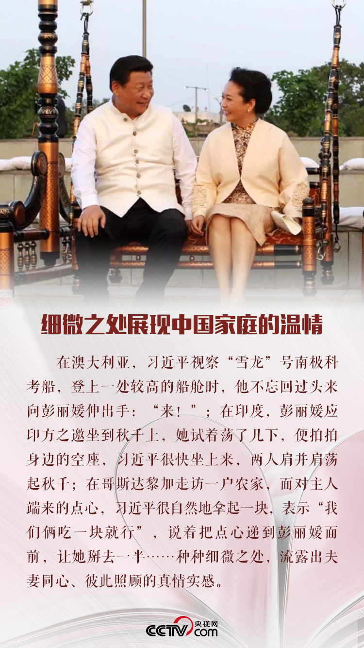 习近平和妻子彭丽媛已携手走过三十余个寒暑。他的办公室里放着她的照片,她陪他回到阔别多年的梁家河看望老乡,他们的服装搭配、举手投足间总有默契……种种细微之处,流露出夫妻同心、相伴相守的幸福美满。