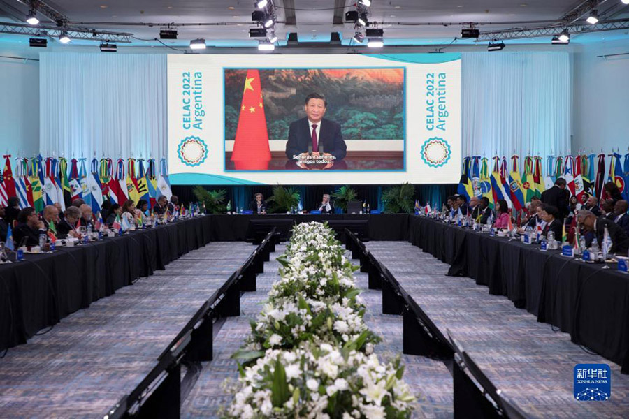 1月24日,拉美和加勒比国家共同体第七届峰会在阿根廷首都布宜诺斯艾利斯举行。应拉共体轮值主席国阿根廷总统费尔南德斯邀请,国家主席习近平向峰会作视频致辞。新华社发(马丁·萨巴拉摄)