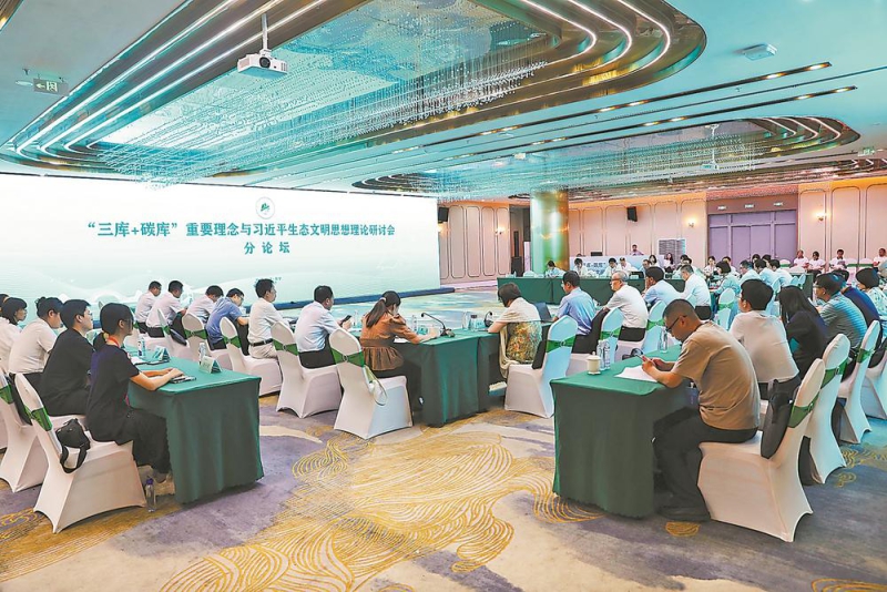 7月29日,“三库+碳库”重要理念与习近平生态文明思想理论研讨会在宁德周宁县举行。其间,还分别举行了“三库+碳库”重要理念与习近平生态文明思想的理论逻辑、“三库+碳库”重要理念与建设人与自然和谐共生的现代化、“三库+碳库”重要理念与习近平生态文明思想的实践逻辑3场平行分论坛。与会专家学者代表从不同领域、不同维度、不同视角出发,围绕“三库+碳库”重要理念与习近平生态文明思想理论开展深度对话,在交流碰撞中感悟真理力量、实践伟力,提出宝贵建议。福建日报记者重点撷取三场平行分论坛的精彩观点、论断,汇聚成章,以飨读者。
