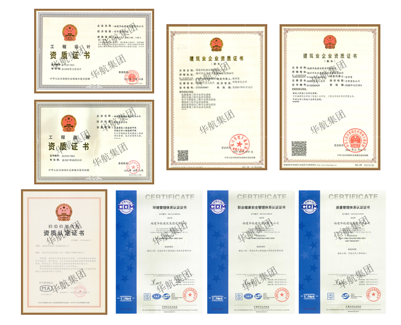 以及房地产开发贰级,建筑工程和人防工程行业设计甲级,房屋建筑工程监理甲级、市政公用工程监理甲级以及桩基检测、见证取样、结构检测、钢结构检测等工程检测资质。并通过ISO9001质量管理体系、ISO14001环境管理体系、ISO45001职业健康安全管理体系等认证。集团可承接建筑各等级工程施工总承包、工程总承包和项目管理业务。